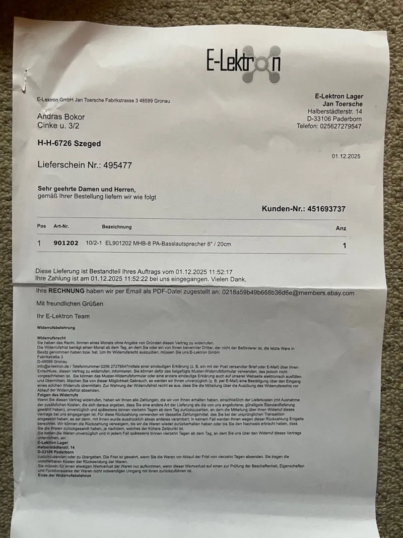 Téves rendelés miatt eladó egy vadonatúj McGee MHB-8, 8 collos (200mm-es) PA mélysugárzó/subwoofer hangszóró. Németországból vásároltam, de sikerült kétszer megrendelni.Ideális PA-hoz, autóba építve vagy otthoni audiorendszerekhez, amelyek robusztus mély hangokat igényelnek.