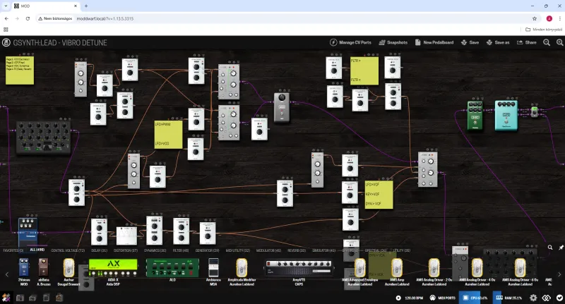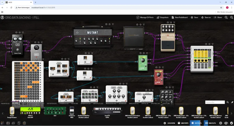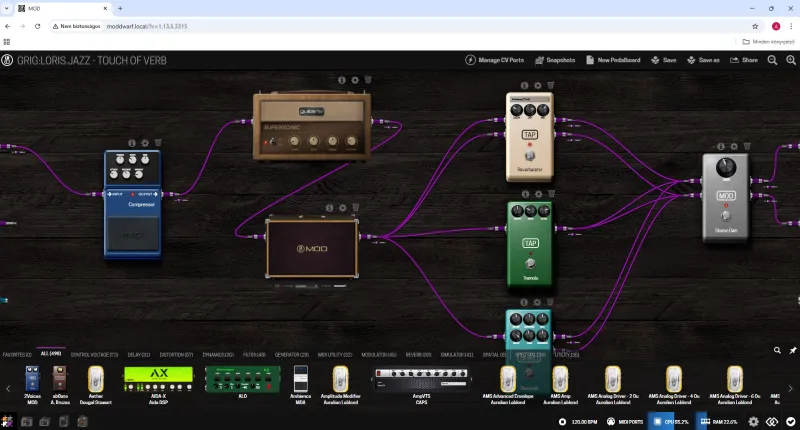 Számítógépre kötve, böngésző alapú (de offline, nem kell hozzá internet) szerkesztőben pofon egyszerűen tudod alakítani a pedalboardjaidat, sokkal szabadabban és komplexebben, mint amit a jelenlegi ˝flagship˝ multieffektek lehetővé tesznek.