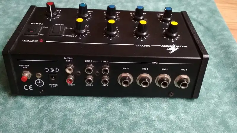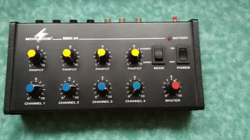 Eladó egy Monacor MMX-24 4 csatornás mikrofon keverő, 6.3-as jack bemenetű, vagy line (4 mono vagy 2 sztereo) keverő. Hangerő és panoráma szabályzás van rajta. 9 voltos adapterrel vagy elemről is működik. 2db van belőle.
