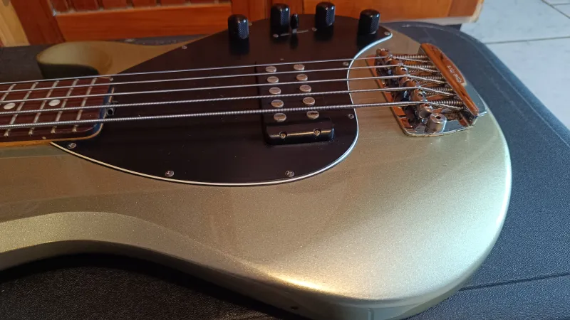 Korábban már hírdettem ezt a gitárt , de sajnos megfeledkeztem a megújításáról, ezért lejárt a hirdetés.Szóval eladó egy nagyon szép állapotú Music Man Stingray 5 húros basszusgitár 2001-ből ritka, Gunsmoke színben, rózsafa fogólappal.