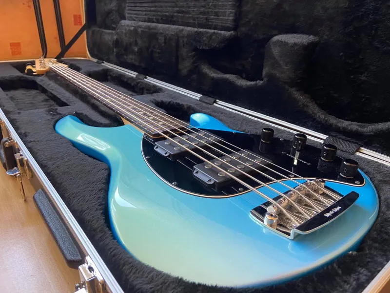 Eladásra kínálok egy különleges és ritka színű Ernie Ball Music Man StingRay 5 HH basszusgitár, 2014-es évjáratból, gyári Sky Blue színben, teljesen hibátlan, gyűjtői állapotban. A hangszer műszakilag és esztétikailag is kifogástalan, frissen beállítva, gyári Music Man keménytokkal együtt.