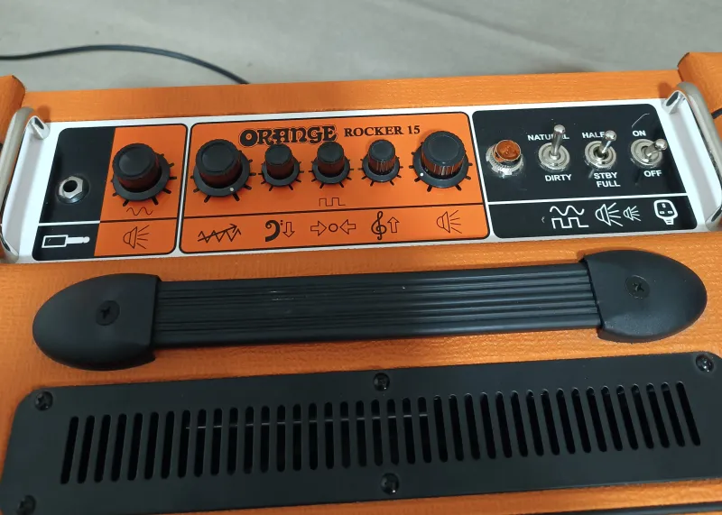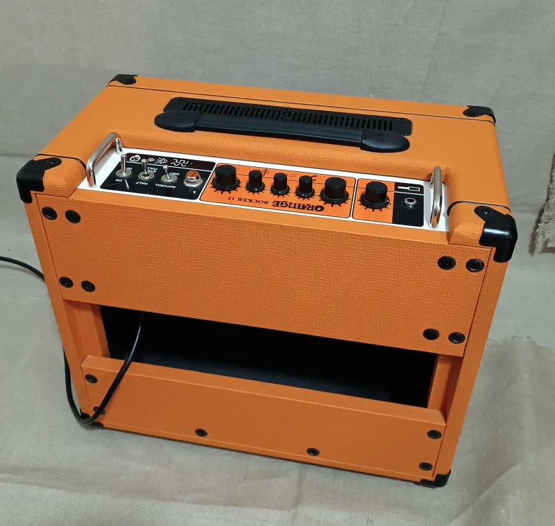 Kifogástalan állapotú 15W-os Orange kombó. Tónus és karakter vesztés nélkül kapcsolható 7-1 és 0,5 W-os teljesítmény. Tiszta (Natural) vagy Overdrive ( Dirty) üzemmód van. A Tiszta csatornán csak egy hangerő szabályzó, a Dirty csatornán drive, hangerő és háromsávos EQ van. A két csatorna között lábkapcsolóval is lehet váltani. Az Orange FS-1 lábkapcsoló is tartozék. 1x 10˝ Voice Of The World Gold Label hangszóró, 16 ohm. Cső-pufferelt FX hurok . Előerősítő csövek: 3x ECC83 (12AX7), 1x ECC81 (12AT7). Végfok, 2 db EL84. Hangszóró kimenetek: 1x 16 Ohm, 2x 16 Ohm, 1x 8 Ohm . Méretek (Sz x Ma x Mé): 47 x 41 x 26 cm, 14 kg tömeg.Reseña relacionada