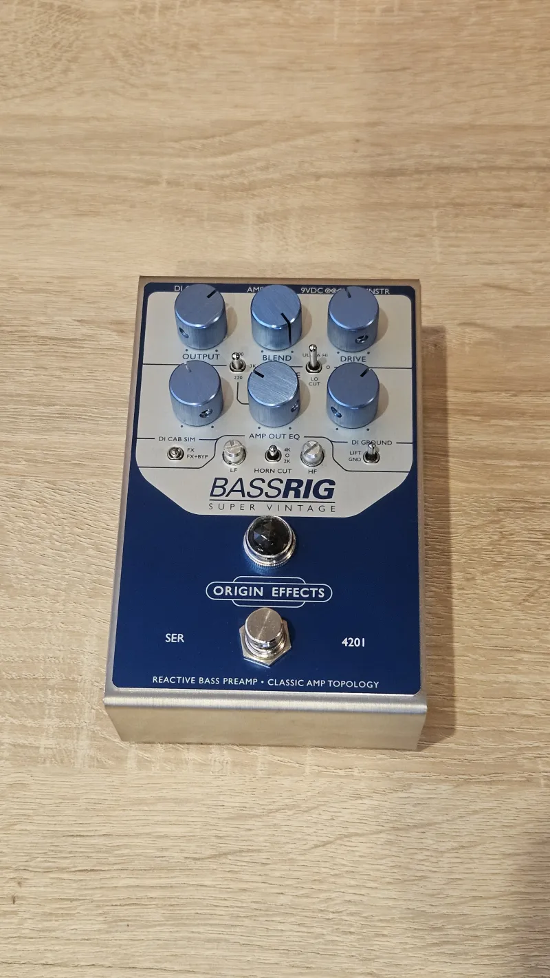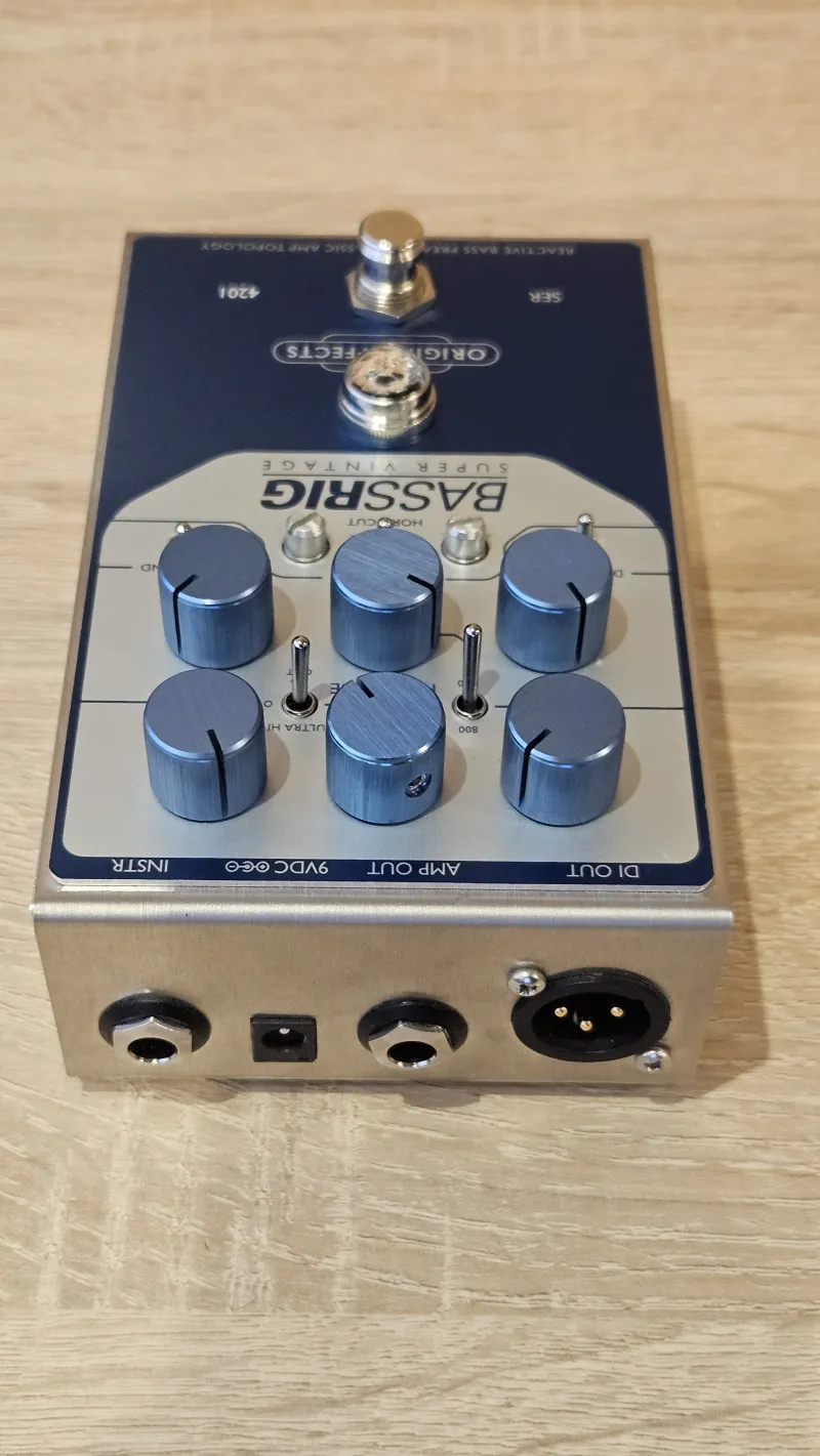 Origin Effects Bassrig Super Vintage basszus preamp pedál eladó (sorszámozott, a 4201-es példány).A legendás Ampeg SVT sound-ot hozza, 8x10-es hangfal szimulációval együtt, mindezt tisztán analóg áramkörökkel, digitális modellezés nélkül.
