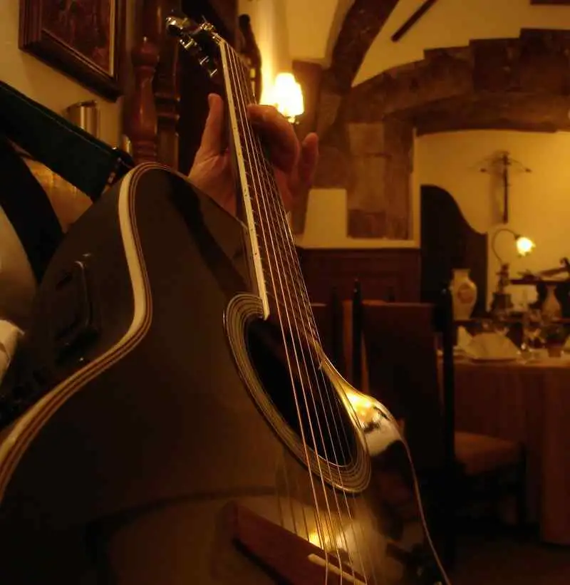 huendeskes¡Con estuche nuevo (40k HUF), en buen estado, muy cómoda (como si tocaras una guitarra eléctrica), suena preciosa, potenciada con cuerdas Martin nuevas!