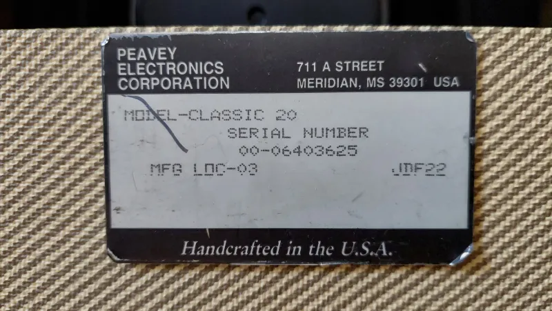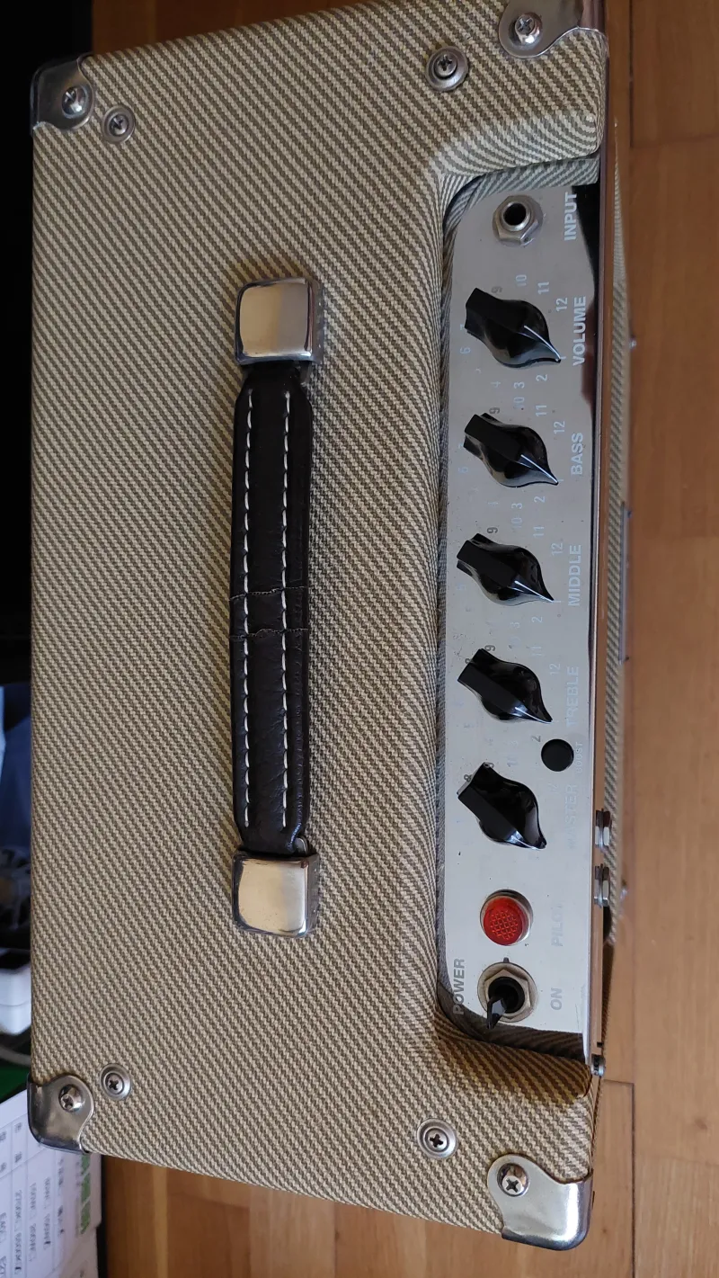 Eladó egy kitűnő állaputú, lakásban használt Peavey Classic 20 full csöves Tweed gitárkombó. 90-es évek széria. A címke szerint 2000-ben gyártották. Teljesítmény 15 W. Egy 16 ohmos 1x10˝-os - kizárólag a Peavey számára gyártott - Eminence hangszóró van benne. Előfokcső: 2 db TAD 7025-WA (12AX7), végfokcső: 2 db JJ Electronic EL84. A csövek kb 1-1.5 évesek, de nem sokat voltak használva. A felső panelen: Master, Treble, Middle, Bass, Volume potik és egy Boost gomb található. A hátső panelen vagy egy hangszóró és egy fejhallgató kimenet. Az erősítő súly 11 kg. Made in USA.Reseña relacionada (2)