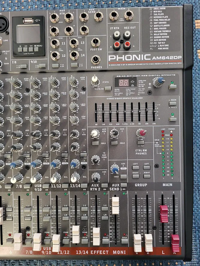 Eladó egy hibátlan állapotú Phonic AM642DP 10 csatornás (6 mikrofon, 4 sztereó), analóg keverő, beépített mp3, wave lejátszóval.Megkimélt, évente 3-4 kisebb rendezvényen használt.