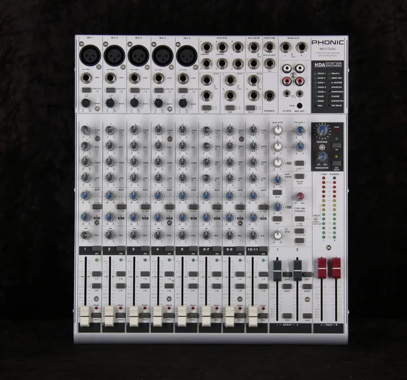 huenPhonic MU1722X 5 mono és 3 stereo csatornás keverő beépített effektekkel.