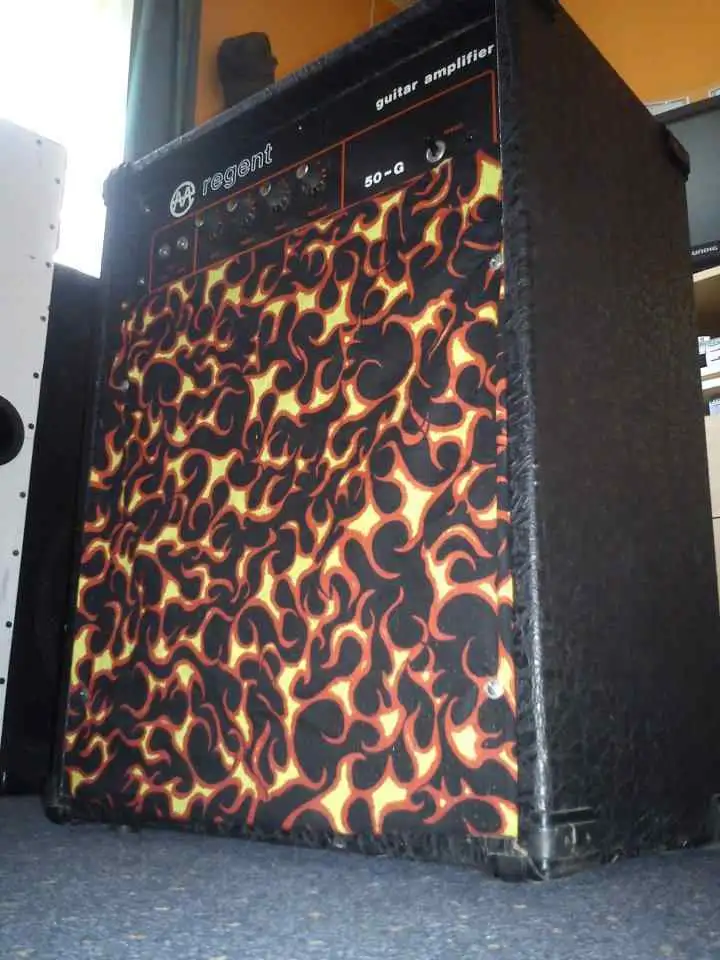 huendeskesOfrezco a la venta mi combo de guitarra Regent 50-G. Está en condiciones estéticas acordes a su edad y en perfecto estado técnico. Su sonido es versátil y tiene suficiente volumen incluso junto a un baterista, con dos entradas, así como potenciómetros de Ganancia, Graves, Agudos y Volumen. No es un artículo nuevo, pero se cuidó, se ve y se oye, es un verdadero artículo vintage. ¡La rejilla protectora original en la parte frontal está intacta y sin daños, la tela con estampado de llamas es solo decorativa!