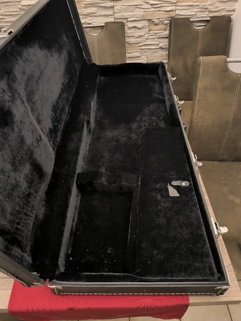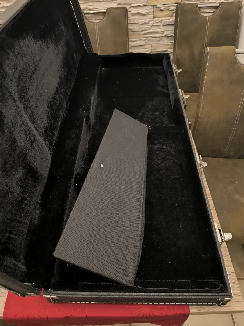 A fekete bársonyból készült belső bélés védi a gitár sérülékeny felületét, a különálló belső rekesz pedig fedéllel elegendő helyet kínál a különféle kiegészítők tárolására.