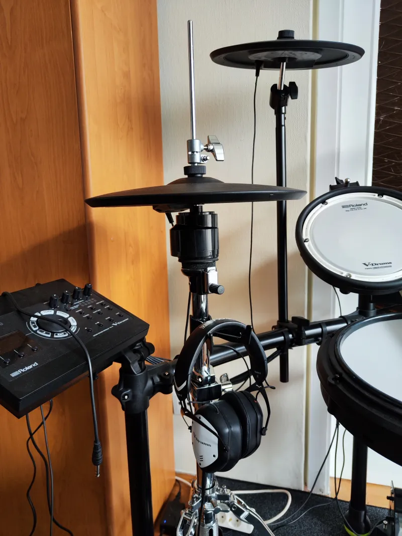 A CY-5-öt felraktam jobbra (beütő) tányérnak. Így szinte megfelel egy Roland TD-17KVX2-nek a szett.