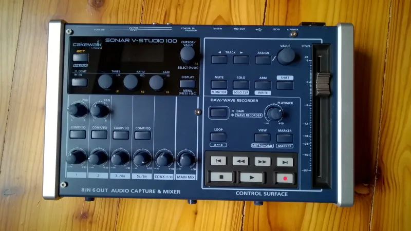 Sokkal több, mint csak egy USB-hangkártya! Önálló (nem kell hozzá számítógép) keverőpult/felvevő-lejátszó, amúgy meg DAW-vezérlő is. Beépített gyakorlatilag latencia mentes hardveres effektek (kompresszor, EQ és zengetés/visszhang), A többsoros kijelzómátrix segítségével mindent be lehet rajta kézzel állítani, nem kell számítógép hozzá. Önálló üzemmódban az SD kártyáról WAV-ot lejátszik és felvesz (egyszerre akár). Számítógéphez kapcsolódva egy kártyaolvasó lesz belőle. 4 GB-s SD kártyát adok hozzá. USB 2.0-ás rendszer, alacsony latencia (256-os buffernél, kb 18 ms), 8(10) be-, 6 kimenet, melyekből az 1-es és a 2-es hangszerbemenet külön jelszintszabályzóval, 7/8 digitális (S-PDIF). A 9/10-es bemenet virtuális bemenet, azaz az éppen a számítógépen lejátszott hang megy rajta, így pl. tök egyszerű bármit felvenni vele. Tetszik egy szám a spotify-on és arra akarsz gyakorolni? Indítsd el a DAW-ot, állítsd be a 9/10-es bemenetet a csatornára (track), és mehet is a felvétel.Ja, igen DAW. Cakewalk Sonar, Ableton Live, Logic és Cubase terjedelmesen támogatja a vezérlőfelületet. Az éppen aktív csatorna hangerejét a motoros!!! csúszkapotival állíthatod, azaz a poti mindig oda megy, ahova kell, amikor kiválasztod a csatornát. A Cakewalk Sonar egy ingyenes és szerintem kiváló DAW (www.cakewalk.com egyedül azért nem használom, mert Ableton Live-on nevelkedtem.