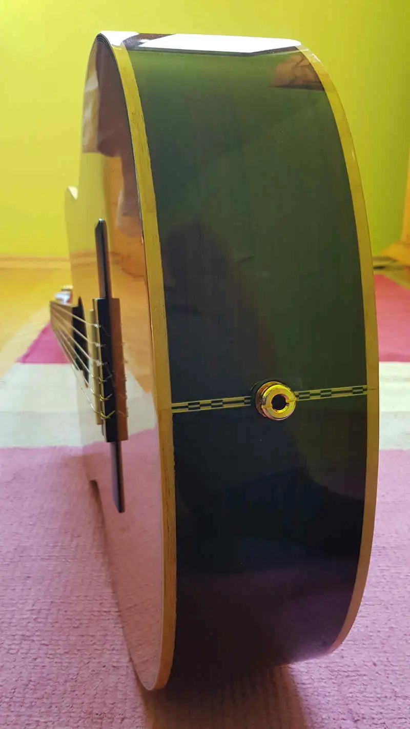 • Tapa maciza de cedro, aros y fondo de palisandro, mástil de caoba