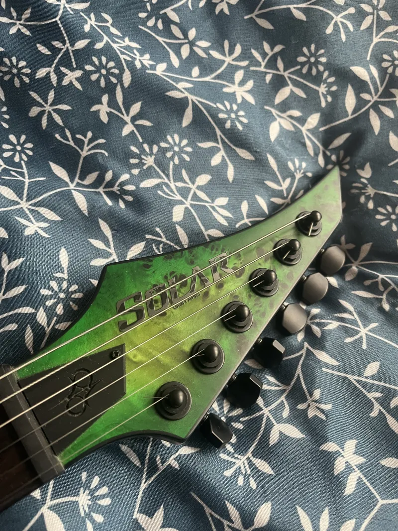 Sziasztok! Cserélném szeretett Solar Guitars S1.6HLB gitáromat Stephen Carpenter Sig. LTD-re elsősorban, de minden ajánlatot meghallgatok. A hangszerrel minden rendben gyárilag satus kulcsos, kapott egy Seymour duncan blackout szettet, sérülés nincsen rajt, nem zajos, kérés esetén csinálok még képet!Reseña relacionada