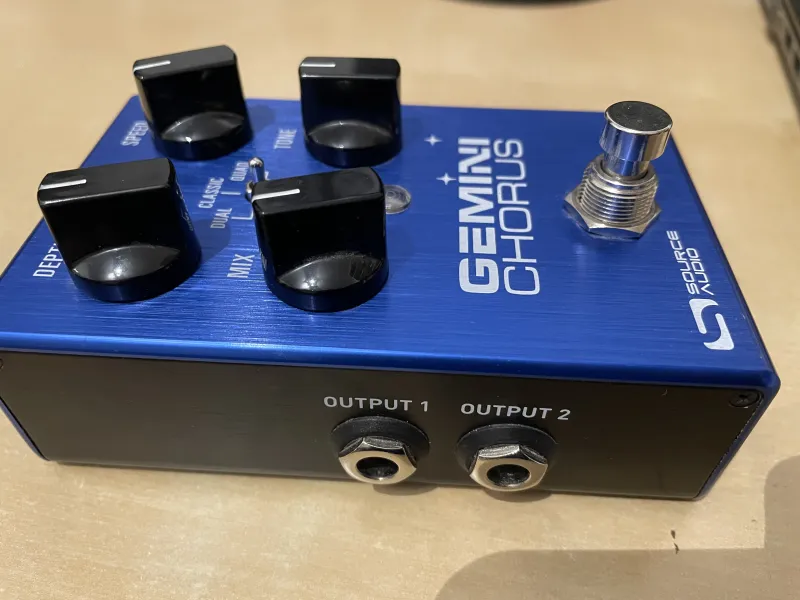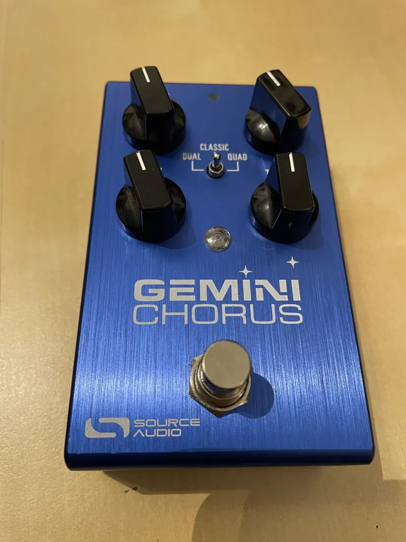 Hibátlan állapotú stereo chorus. Stereo be-, és kimenet. App segítségével tölthető rá más Source Audio algoritmus is (phaser, flanger, stb.), tehát ez egy “több pedál az egyben˝. Kis kapcsolóval 3 kórus sound választható (vagy más algoritmus). Akár buli közben is csak átpattint az ember és már egy másik funkciójú effektként használhatja.Csere most nem érdekel, köszönöm!