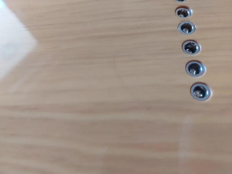 Esztétikailag: egy alig észrevehető, halvány csík van a hátoldalán (talán övcsattól), igyekeztem fotózni.