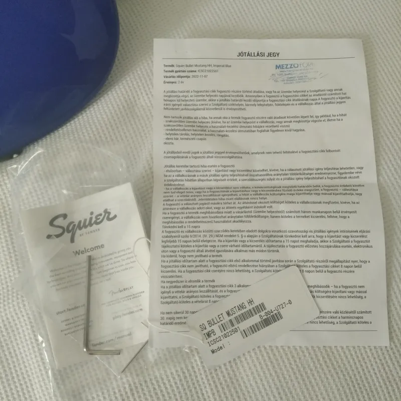 Újonnan vásárolt, még garanciális, azóta sem játszott Squier Bullet Mustang. A csomagolása / gyári karton doboz is meg van.Reseña relacionada