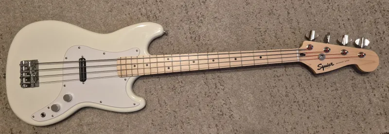 Eladó tökéletes állapotban lévő, Musiclily Hot Rails pickuppal tuningolt fehér Squier Sonic Bronco basszusgitár. Természetesen az eredeti hangszedőt is adom. Tok NEM jár hozzá. La Bella Deep Talkin` flatwound húrok vannak rajta.Átvétel kizárólag személyesen Budapesten, Mátyásföldön (16. kerület).