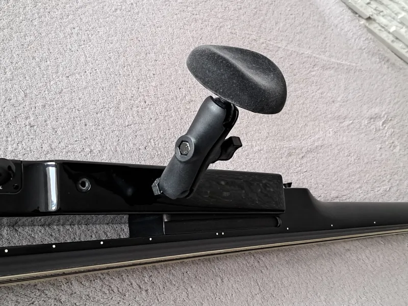 A gyári testtámasz nincs meg hozzá. Helyette masszív, könnyen állítható, RAM konzol alapú párnás testtámasszal adom (ld. képek).