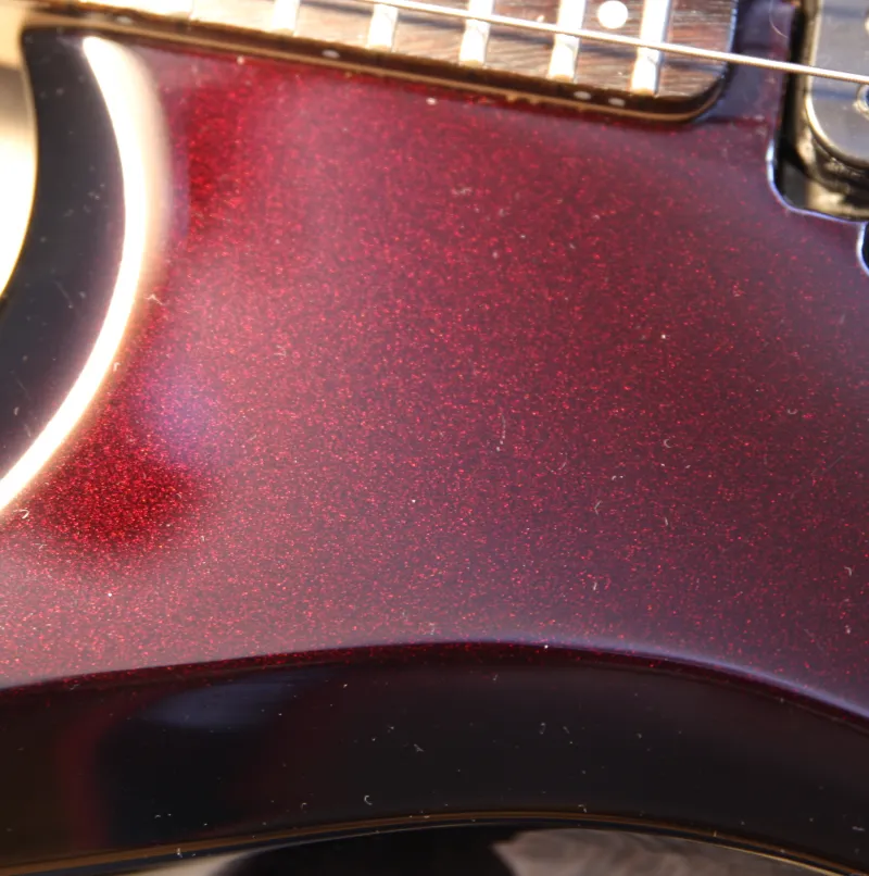 Univerzális hangszer, értékes upgradekkel. 2012 októberében készült kiváló állapotú Pearl Red Burst gitár. Kevés fényben szinte fekete, gyöngyház pigmenteket tartalmazó magasfényű test. Apró karcok vannak a gitáron de összességében szép állapotban van. Az egyelen nagyobb karcolást fényképeztem. A natúr juhar nyak a fejen magasfényű színtelen lakkozást kapott, a nyakat pedig selyemfényű lakkal festették, a kéz kellemetlen tapadásának elkerülésére. Nagyon kényelmes nyak profil. Az érintők kifogástalan állapotban. A beállítás a legigényesebb követelményeket is kielégíti. Nagyon jó a kétpontos Sterling tremoló, de kiváló a gyári satus kulcs is. A gitár kapott egy Guyker titán baba készletet. Dimarzió hangszedők vannak a gitárban. A hídnál a JP6-ba is szerelt Crunch Lab , a nyaknál a JP6-ban használt kissé színtelen LiquiFire helyett az azzal azonos jelszintű, de kiegyensúlyozott karakterű PAF PRO került. Mivel mindkét hangszedő felezhető, a beépített push-pull potival ez a lehetőség kihasználható. A poti alapállásban a szokásos nyak - nyak+híd- híd humbucker hangokat hozza, míg a felső állásban a nyaki hangszedő külső - nyak külső+ híd belső - híd belső kombinációk érhetők el. Mivel a JP50 nem tartalmazza a JP-nél megszokott pajzs berakást az első érintőnél, kárpótlásul ide egy JOCOMO kelta köt került. A gitárhoz gyári Sterling tok tartozik.Envío