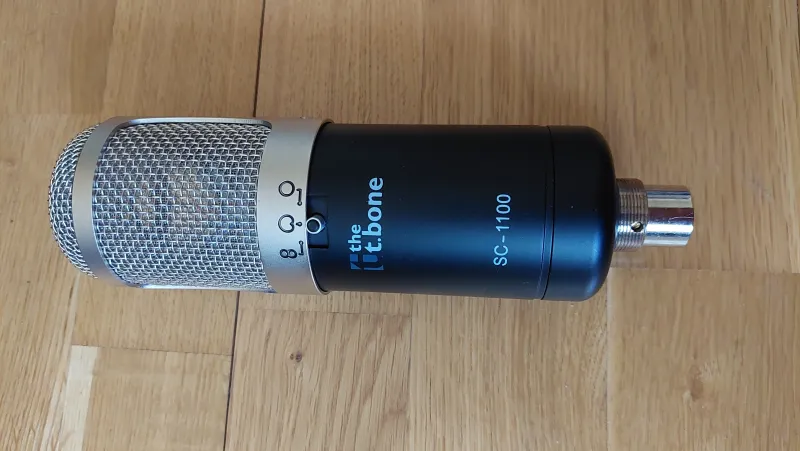 Eladó egy patika állapotú t-bone SC 1100 nagymembrános stúdió kondenzátor mikrofon. Nagyon keveset és csak lakásban volt használva. Elől 3 kapcsolható iránykarakterisztika (omnidirekcionális, nyolcas és kardioid), hátul mélyvágás kapcsoló. Frekvenciaátvitel: 20 - 20000 Hz. Max SPL (hangnyomásszint): 129 dB. Tápellátás fantomtápon keresztül (48 V). Tartozék: lengéscsillapító kosár, alumínium táska.Reseña relacionada
