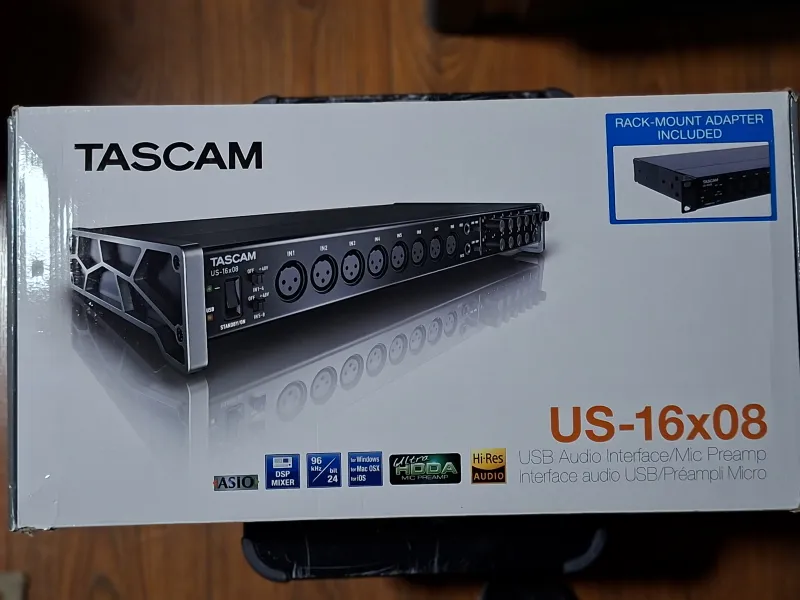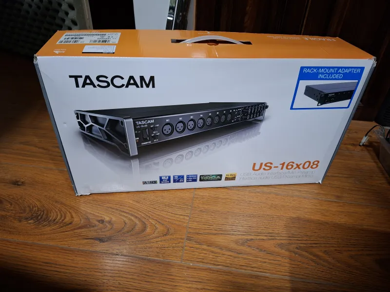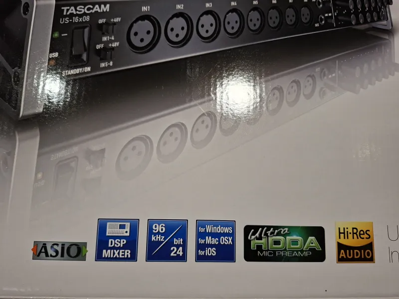 Tascam US-16x08 USB Külső Hangkártya Audio interfész.USB audio/MIDI interfész, 16 mikrofon és vonal bemenet, minőségi, tiszta hangzás, 8 Ultra-HDDA mikrofon erősítő, 57dB gain, 8 vonal bemenet, 8 szimmetrikus vonal kimenet, további 2 kimenet, beépített DSP Mixer, 4 sávos EQ, kompresszor, reverb, 8x 1/4˝ line In, 8x 1/4˝ line Out konnektor, 8x XLR konnektor, MIDI I/O konnektor, USB konnektor, kellékek rackbe szereléshez, USB kábel, AC adapter, méretek: 445 x 59 x 219 mm, súly: 2.8 kg