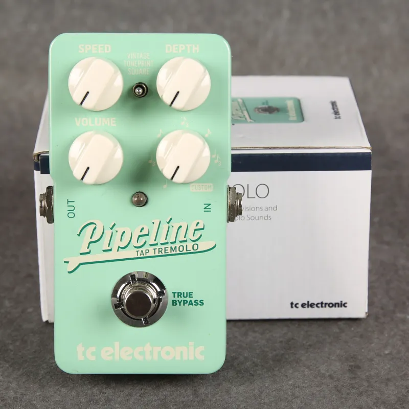 Kihasználatlanság miatt eladó TC Electronic Pipeline Tremoló pedál, dobozával, alján Velco. Szeép megkímélt állapotban.A széles körben várt Pipeline Tap Tremolo azt az évjáratú meleget veszi át, amely a tremolo hatást annyira ikonikussá tette, és modern éllel párosítja radikálisabb helyzetekhez. A csővezeték puha vintage szinusz hullámokkal és szilárd négyzet alakú blokkokkal rendelkezik, amelyek egy kapcsoló mozdulatával elérhetők, és akár 6 dB-es erősítéssel soha nem hangzik vékonyan vagy leeresztve. A lábkapcsoló érintési tempóval engedélyezett a tempó gyors beállításához, a Subdivision gombbal pedig hét inspiráló ritmikus hangsúlyra oszthatja fel a tempót. És végül, de nem utolsósorban - TonePrint-kompatibilis, és végtelen sokféle lehetőséget kínál egy kis dobozban, amely nem fog döcögni a táblán. A csap tempóval és a sokoldalú felosztó gombbal az összes ritmikus hajlam megvan a fedélzeten, és könnyen elérhető. Betöltöttük a csap funkciót a szokásos lábkapcsolóba, így nem fog túl sok helyet elfogyasztani a pedalboardon. Csak tartsa lenyomva a lábkapcsolót két másodpercig, a fény zöldre vált, és megérintheti a kívánt tempót. Ezt követően használja a Felosztás gombot, hogy a tremolójának megfelelő ritmikus dadogást adjon, a helyzetnek megfelelően. Az Egyéni mód lehetővé teszi a saját felosztási mintázatának programozását. Az ingyenes TonePrint Editor használatával akár 4 sávot is fel lehet osztani a különböző felosztásokkal a tremolo darabok kopacetikus paplanjához.