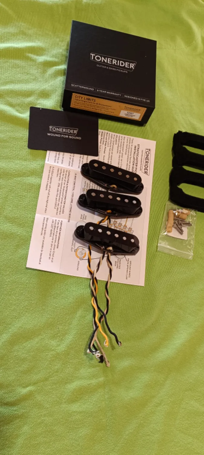 Üdvözletem Mindenkinek!Eredeti kábel hosszúsággal,minden tartozékával eladó hangszedő szett. Fekete koptatókon apró karcok vannak,de műszakilag kifogástalan. Gyönyörű strathang, kiegyenlített pickup teljesítménnyel. Személyesen átvehető vagy Foxpost az árban.