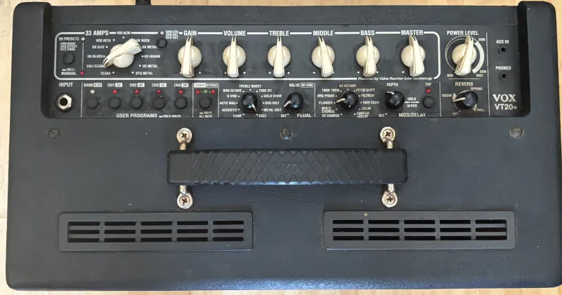 Eladóvá vált jó állapotú VOX VT20+ 30 Watt csöves modellező gitárkombóm!Minden az eredeti rajta és mindene működik!