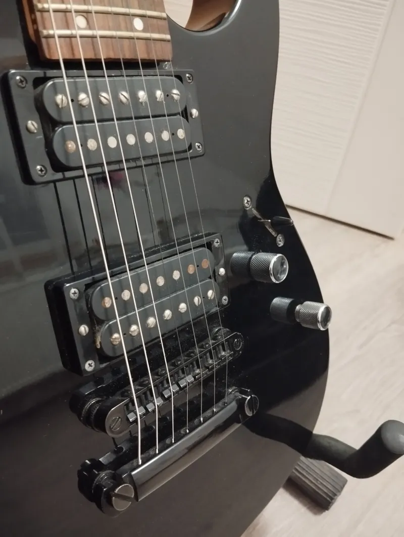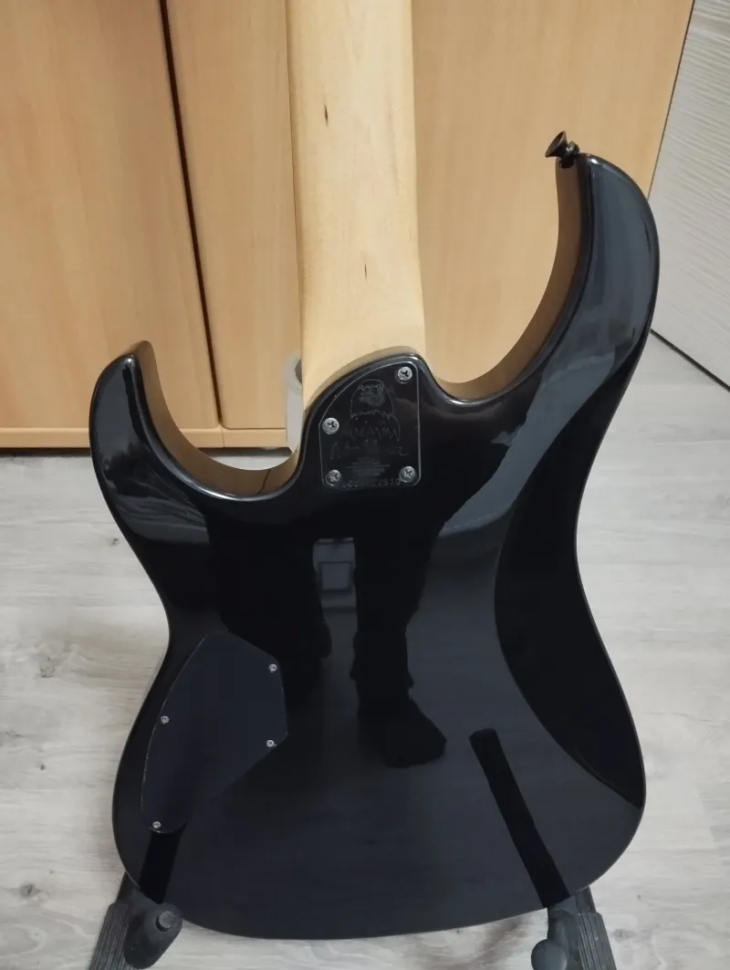 ˝Black metallic˝ színű, hársfa test; juhar nyak, rózsafa fogólap, alacsony húrnyomás, nagy rádiusz, 24 bund, Grover kulcsok.