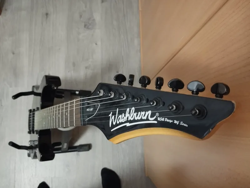 Kihasználatlanság következtében eladóvá vált beérett hangú, szép állapotú Washburn WG587 (1999-2002) hét húros gitárom.Hangszedői tuningoltak: a KORNélküli klasszikusok, a zseniális Dimarzio PAF7-esek - felezhetőek a hátsó push-pull poti (tone) kihúzásával, ami a mélyeket vágja, nem mellesleg - gyönyörű, csilingelős tisztái vannak ám ezáltal! (Az egyik megmaradt gyári humbuckert is adom hozzá.)