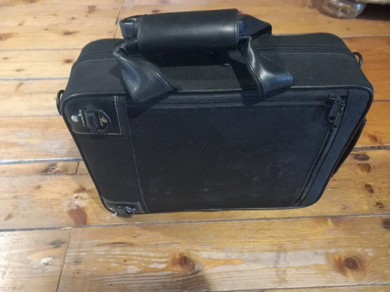 Használt, Bb klarinét, középkategóriás modell haladó játékosoknak. Francia (Boehm) fogású, 17 füles, 6 gyűrűs, hordója 65 mm. Az újdonság egy állítható és cserélhető hüvelykujjtámasz, amely nyaki kampóval kapcsolódik. A hangszer teste kiváló minőségű grenadilla fából, a mechanizmus ezüstözött alpaka anyagból készült. A szerszám tartalmaz egy MP CL 4C fúvókát kupakkal, egy kemény tokot és apró tartozékokat.Envío