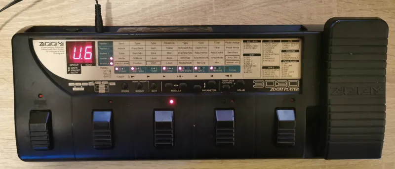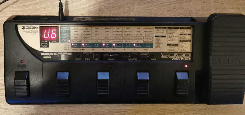 Kihasználatlanság miatt eladóvá vált Zoom Player 3030 multieffekt pedálom, egy vintage, `80-as évekbeli csodabogár. Itthoni pengetéshez vettem, szerintem erre is lett kitalálva, de már egy jó ideje csak a szekrényben van.Érdekessége, hogy a torzító effektekhez analóg áramkört használtak a természetesebb hangzásért.