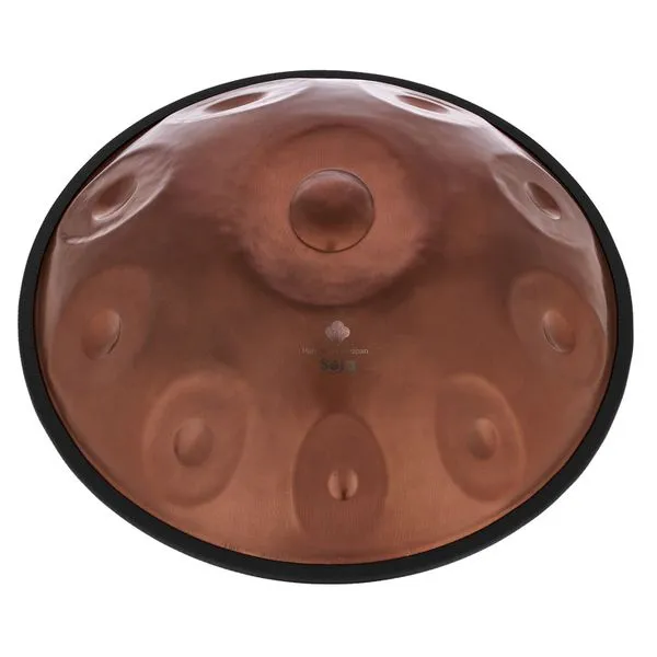 Handpan Tuning: D Kurd A=440 Hz Tones: D3 A3, Bb3, C4, D4, E4, F4, G4, A4, C5 Professionally tuned Material: Phoenix Steel (stainless steel) Handmade Colour: Bronze Weight: 5.7 kg Diameter: 57 cm Incl.