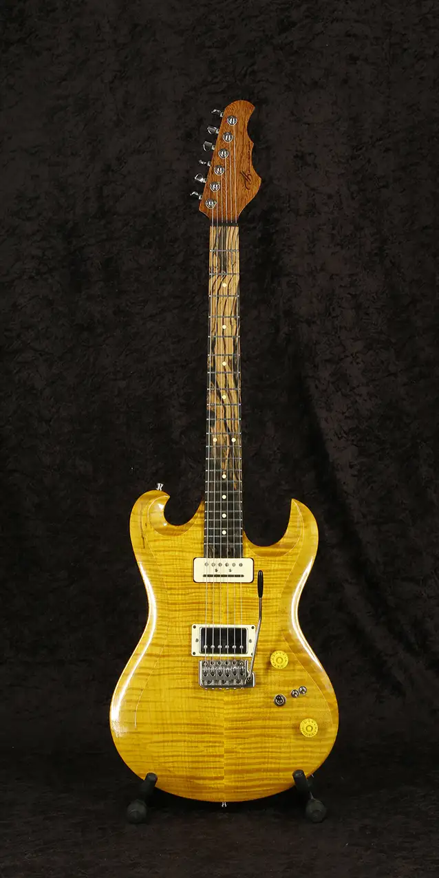 Test kaya mahagóni 1 részből, bookmatched jávor top, nyak sipo mahagóni, ázsiai ében, pertinax nut.