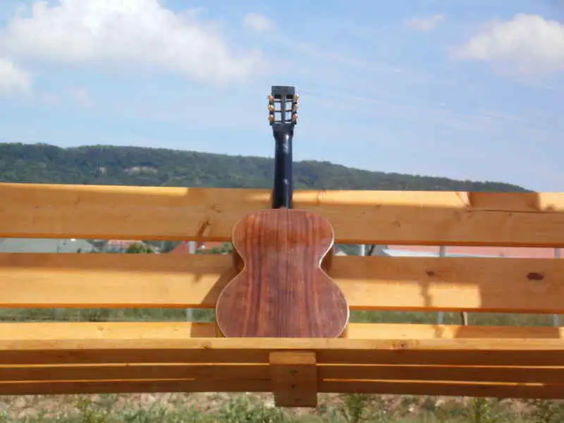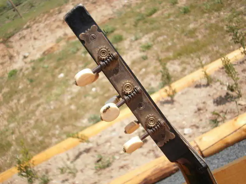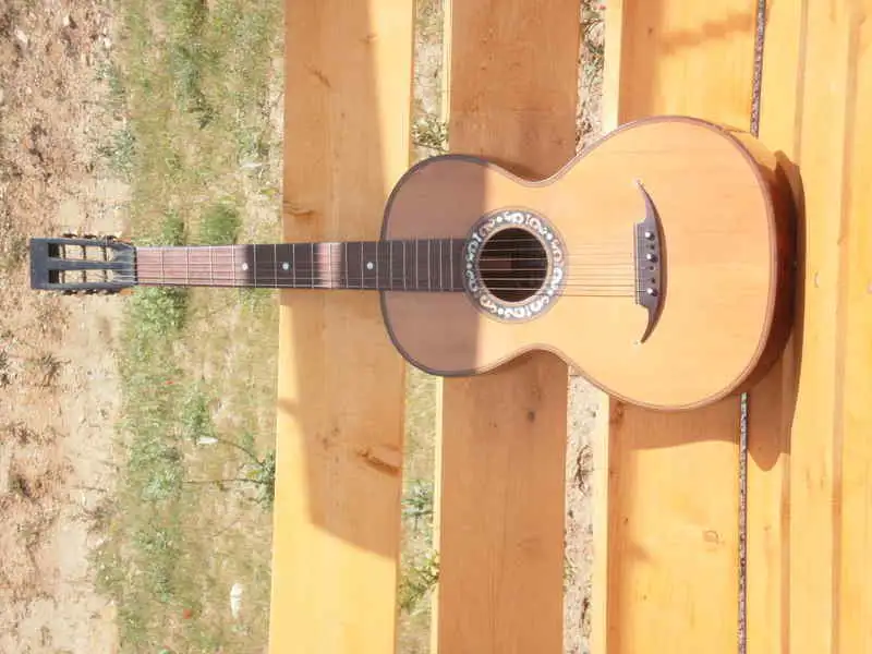 huendeskesez egy antik kis gitár a korának megfelelő fellelt állapotban a hangoló kulcsok rézből vannak a hátulján lévő repedést a képen láthatjátok