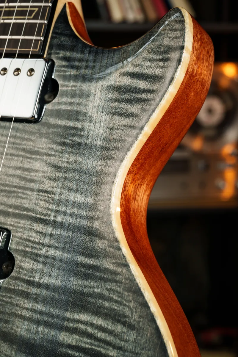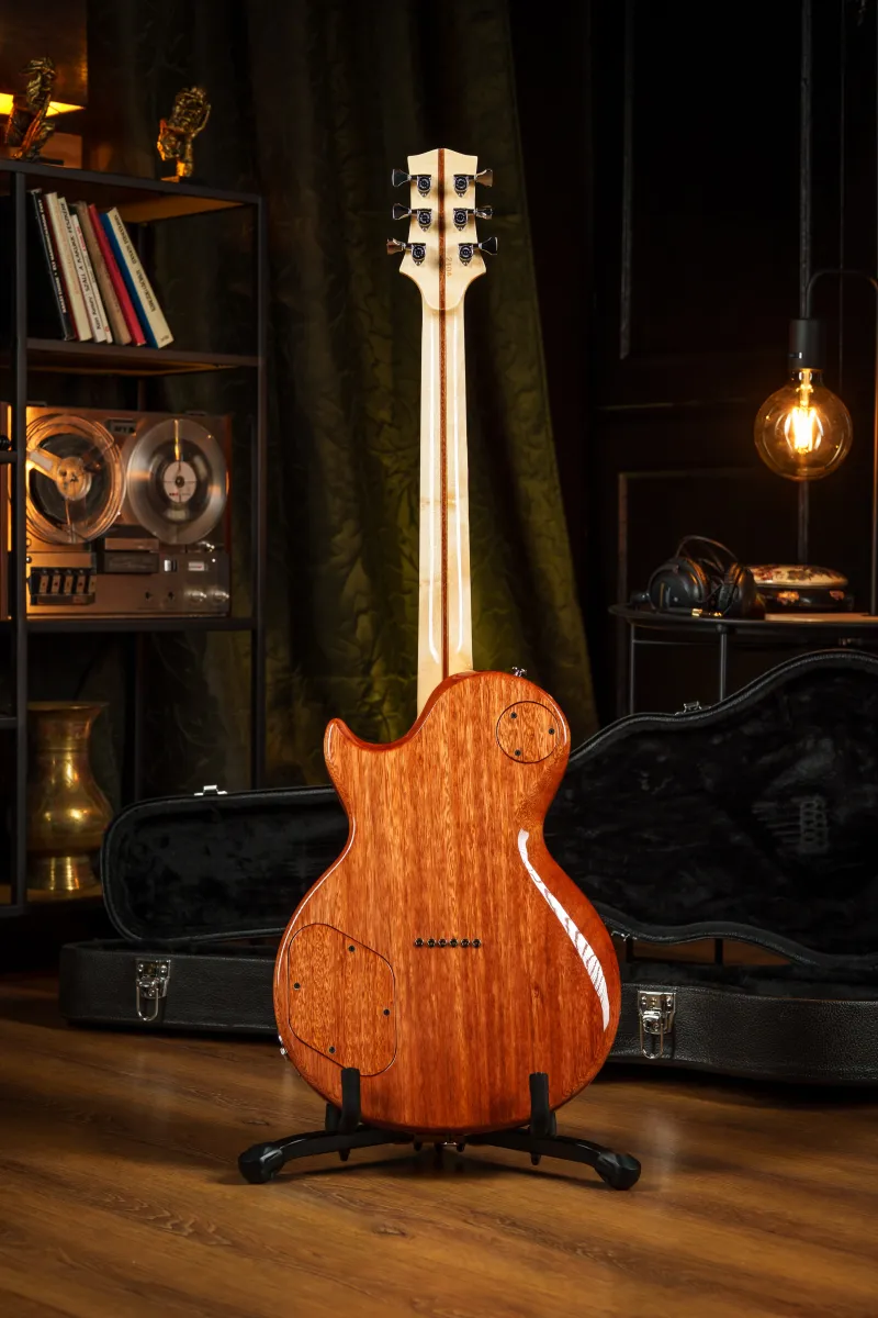 Nyak anyaga: Quater sawn jávor - mahagóni / grafit megerősítéssel / 2 itányú merevítőpálca