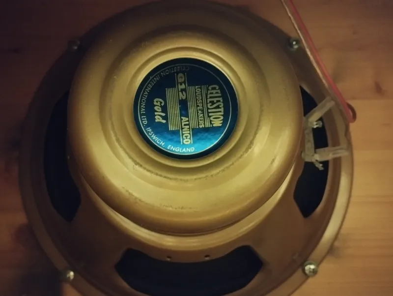 Eladó gitárláda, Celestion alnico gold 12˝-os, 15 Ohm, 50W teljesítményű hangszóróval. A láda tömör fenyőből van. Tökéletes állapotban, a hangszóró sérülés- és javítás mentes. Kipróbálható Diósdon.Szállítás