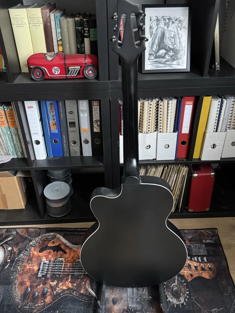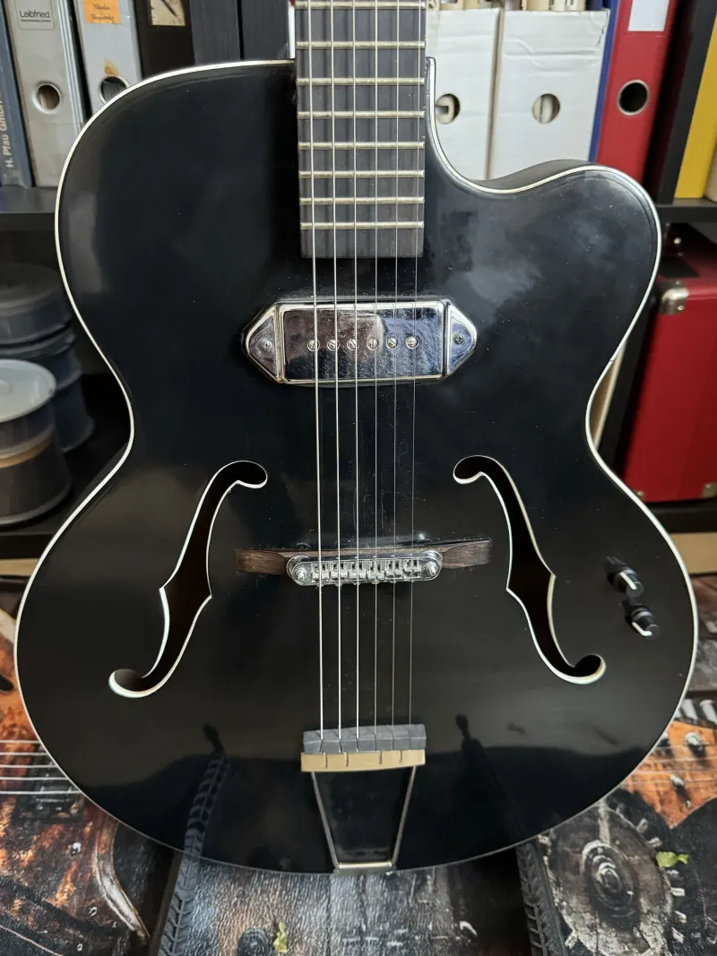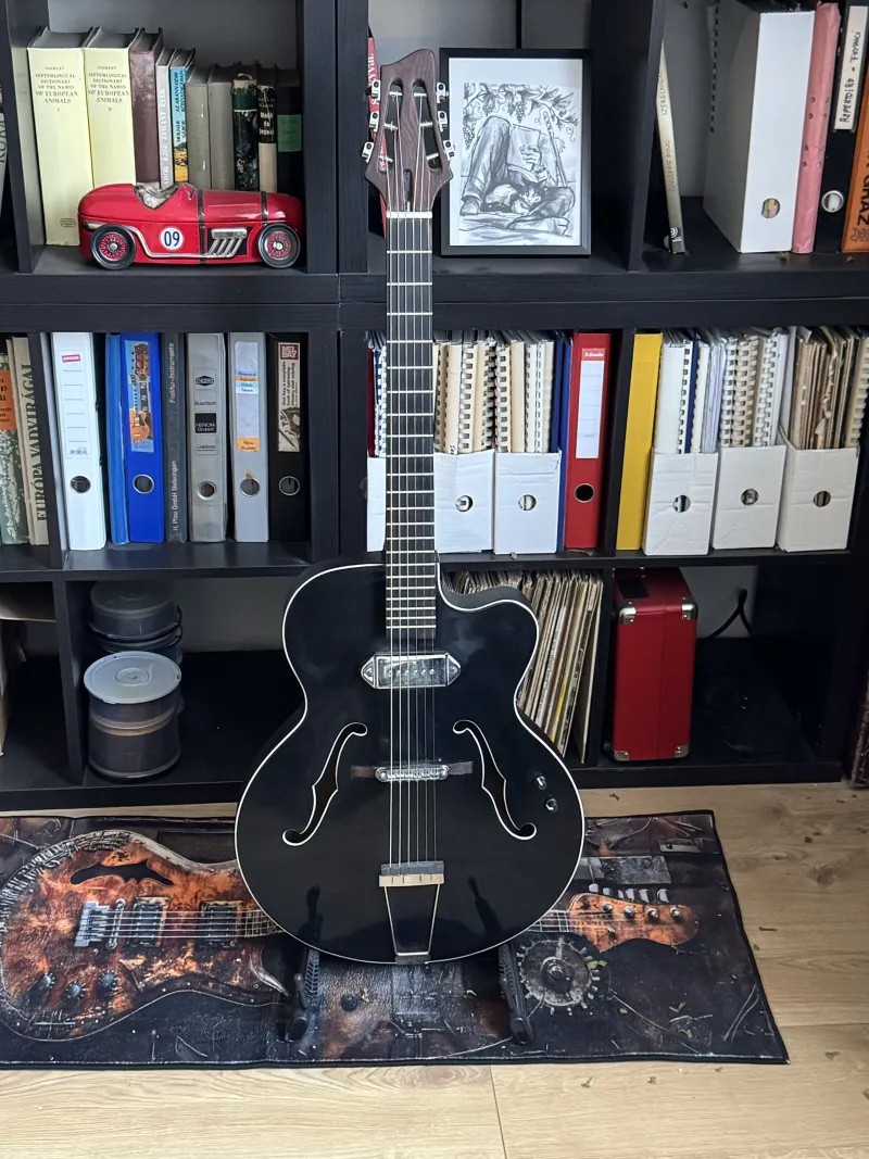 Eladóvá vált egy jazz gitár. Eredetileg egy nylon húros jazz gitár projektnek indult, ezért a nyak profilja és szélessége egy klasszikus gitárról (Takamine C128-asról) lett lemásolva. A nyak 3 darab mahagóniból lett összeragasztva, egy ében fa fogólappal. A testet egy régi német Rex gitár adta, több mint valószínű, hogy laminált. P90-es pickup és a húrláb Stageshopból származik, a maradék elektronika, pedig egy archtop pickup rendszer része volt. Csere most nem játszik. Helyszínen kipróbálható.Kapcsolódó hangszerteszt