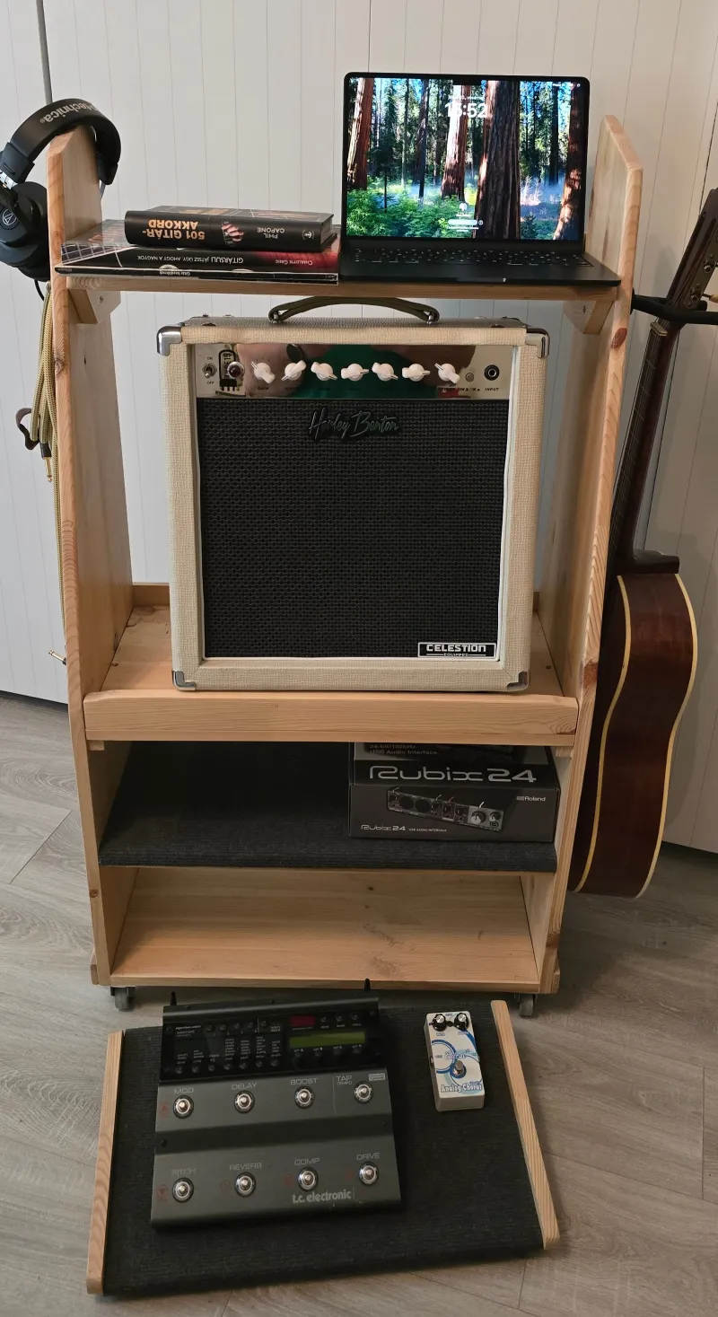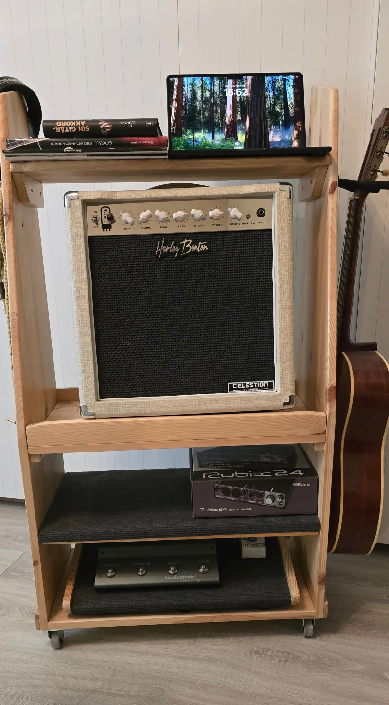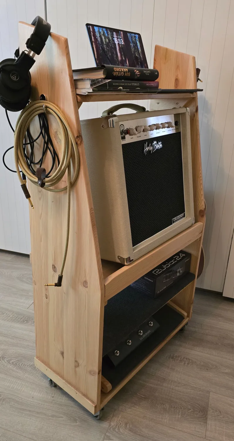 Gitárkombó állomás/állvány - Home madeEladó ez a saját készítésű, fenyőfa gitárkombó állomás. (Természetesen kiegészítők nélkül...)
