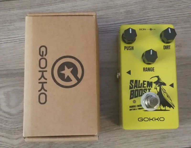 Eladó, keveset használt Gokko Salem Boost pedal, dobozával, alján Velco.Vintage ihletésű Treble Boost pedál gitárosoknak. True Bypass.
