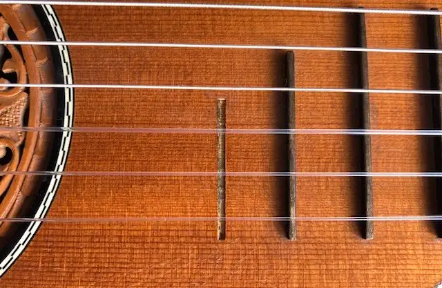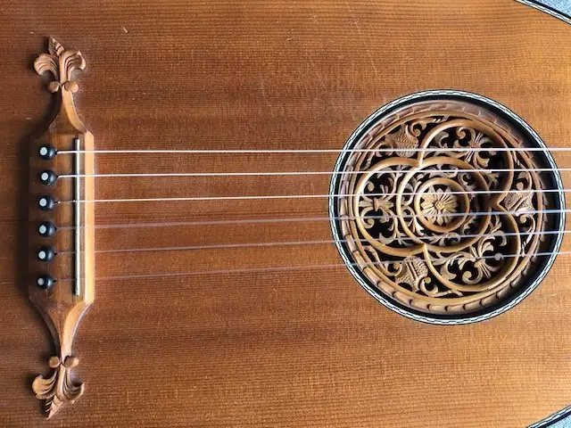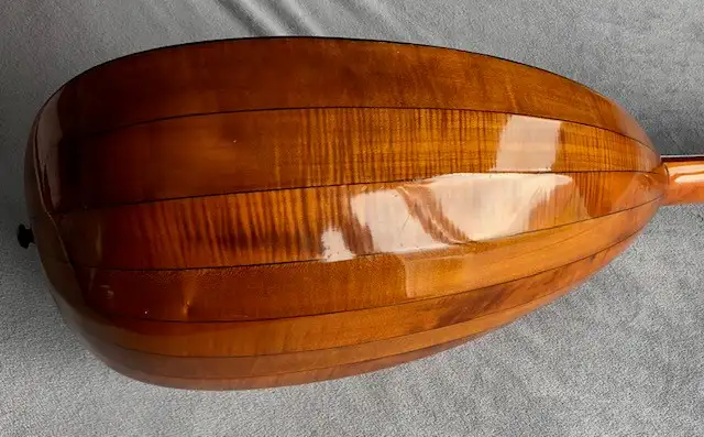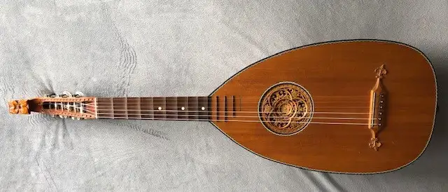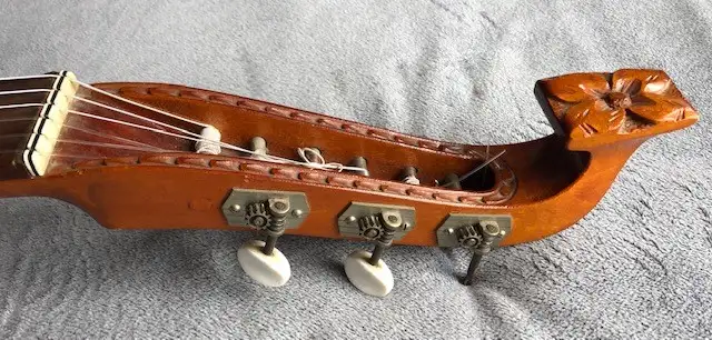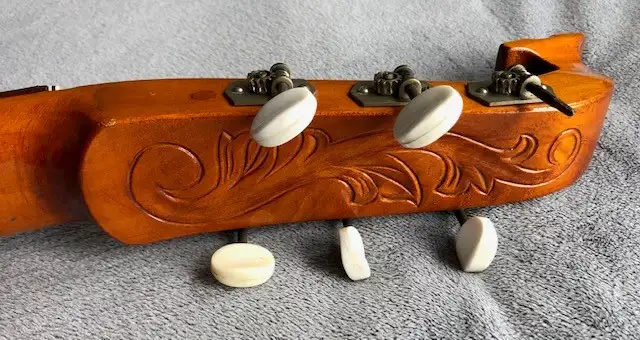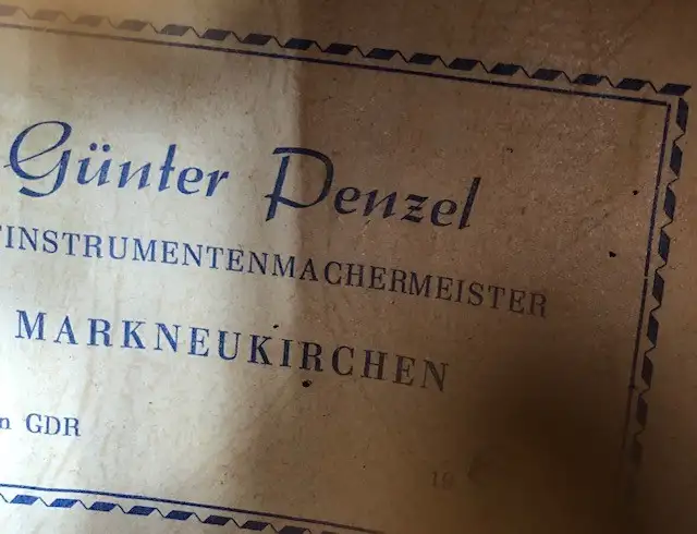 Günter Penzel német gitárkészítő mester által 1983-ban készített interziás berakással díszített gitárlant, az egyik húrtekerő műanyag eleme ill. az utolsó bund hiányzik.Kapcsolódó hangszerteszt
