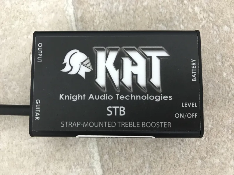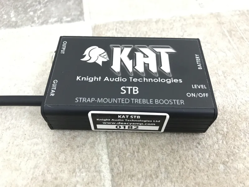 Egy igazi különlegesség: Brian May hivatalos treble booster, Strap-Mount Treble Booster (STB).Nigel Knight Brian May technikusa a 90es évek óta. Ő és Greg Fryer, May gitárkészítője, egyesített cégük a KAT (Knight Audio Technologies).