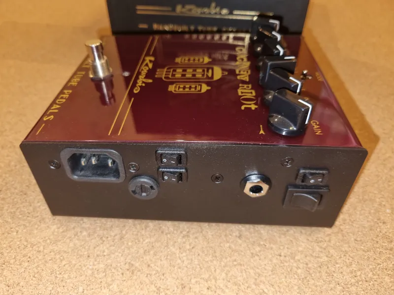 Eladó egy kézzel készült, butik kategóriás Cockney Riot preamp pedál a görög Kourbis Amps-től!Ez nem egy digitális modellező vagy sima tranzisztoros torzító: két darab válogatott 12AX7 elektroncső dolgozik benne valódi anódfeszültségen, így egy igazi brit csöves erősítő dinamikáját és válaszreakcióit nyújtja.