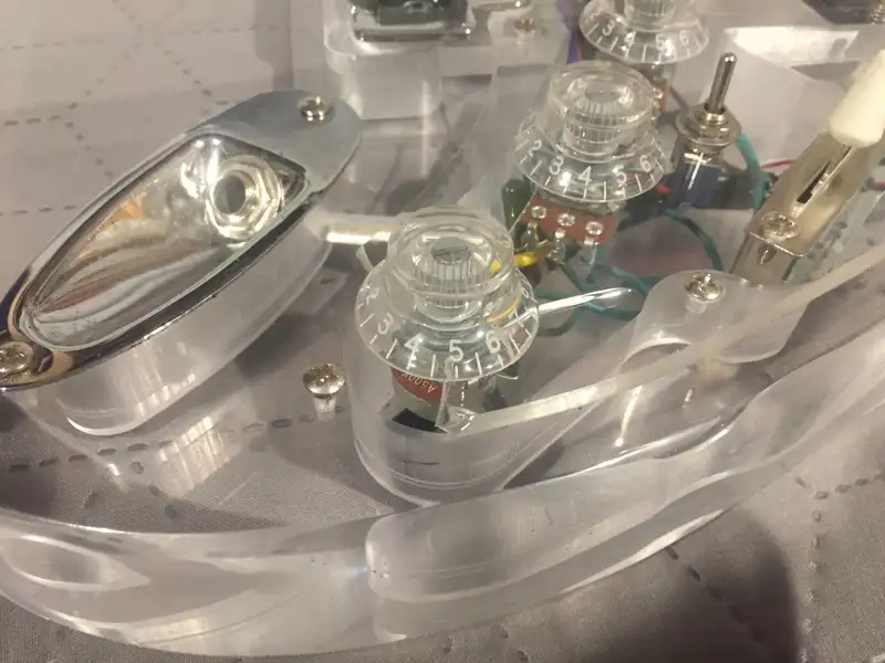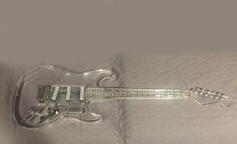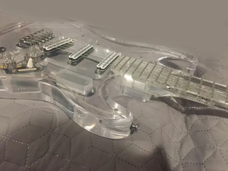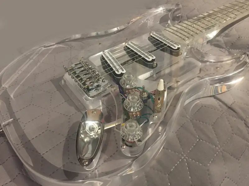 Különlegessége, hogy nem csak a test, de a nyak is átlátszó (nagyon ritka). Két pálcával erősített nyak. Három humbuckeres, amit ha akar a vevő, később akár felezhetőre is átalakíthat.