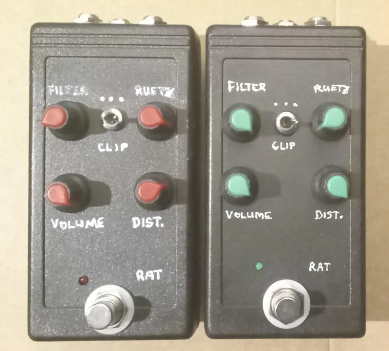 Eladó Rat klón, Ruetz moddal és extra clipping opciókkal (szilícium mellett piros LED és diode lift). OP07 chip (Rat II) - nem jelentős a különbség ez és a nehezen beszerezhető LM308 közt. Van belőle piros potisapkás (a képen látható zöldet elvitték). Átvehető Budafokon, igény esetén Újbudán, vagy Pesten a Boráros és a Közvágóhíd között. esetleg Foxpost.Szállítás