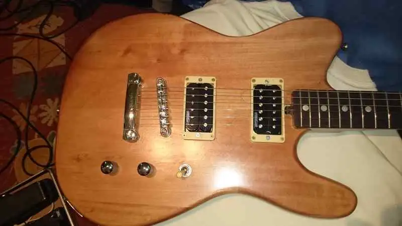 - két hangerő poti, a két humbucker hangerejének külön állítására (de igény szerint 5 perc alatt átkötöm a szokásos 1 hangerő - 1 hangszín felállásra)
