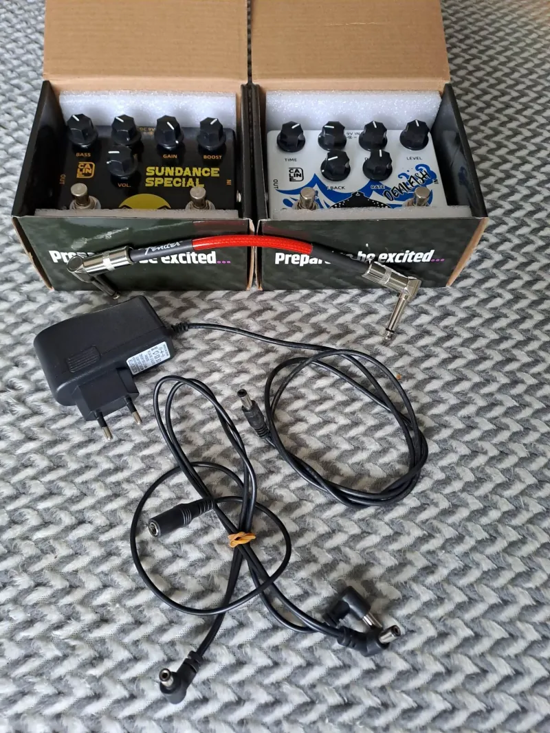 Gitárpedálok egyben. Megvalósulatlan projekthez (maradtam a multinál) analóg pedálok, patch kábel és táp, tápelosztó.A csomag tartalma: