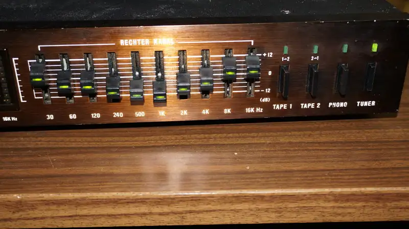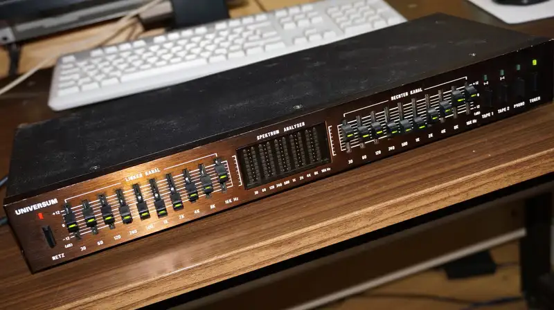 Eladó a képeken látható szép állapotú, igényesen kidolgozott 2x10 sávos működő UNIVERSUM EQ3041 hangszínszabályzó.Az 5 pólusú régi csatlakozók kompatibilitás miatt műszerész által cserélve lettek 6,3mm-es stereo jack csatlakozókra.