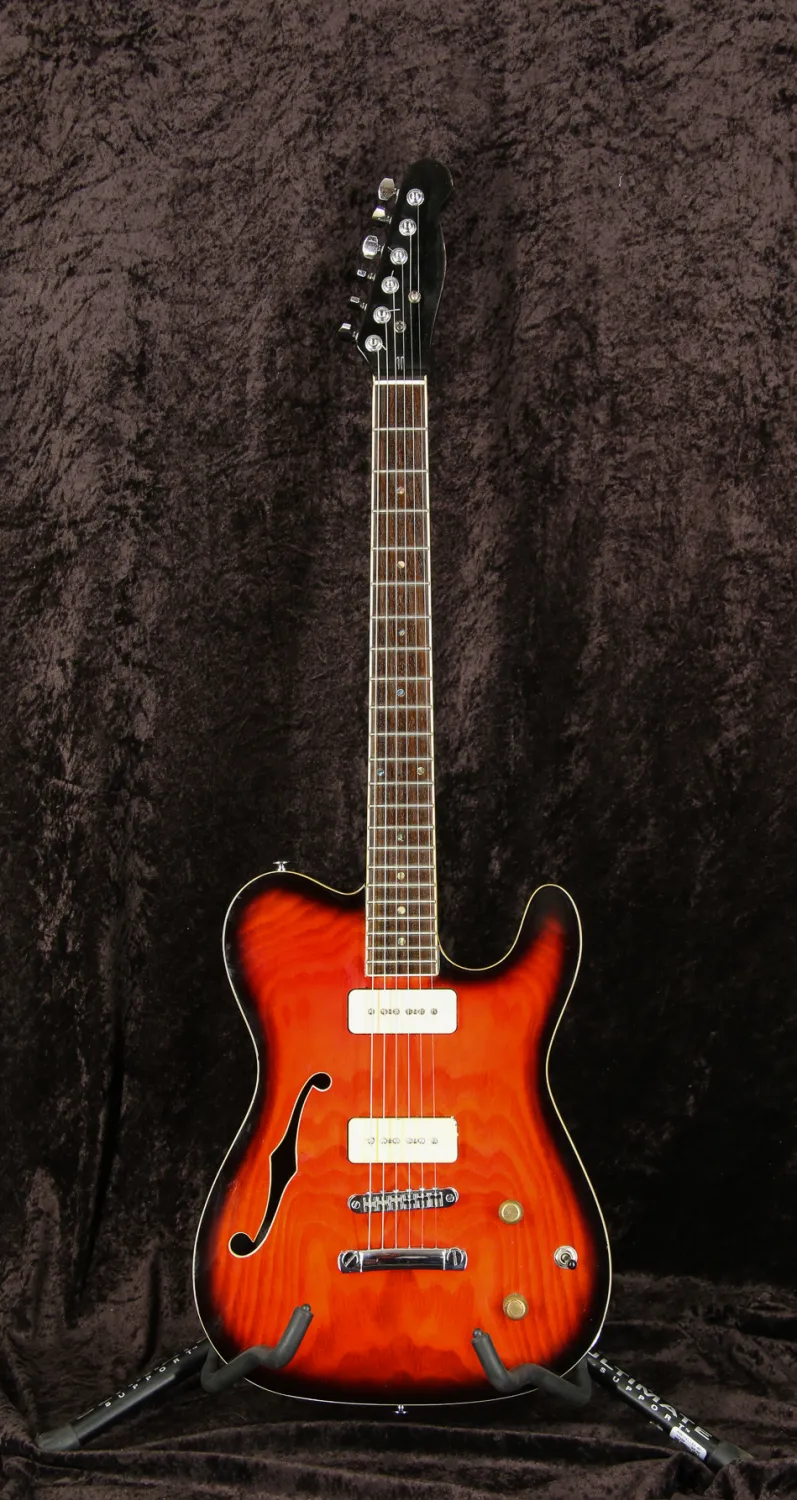 huenWesley Freeport Thinline MIK elektromos gitár. Kagylóberakás, GFS hídi, Kent Armstrong designed nyaki WPU90CR hangszedő. Műbőr puhatok.
