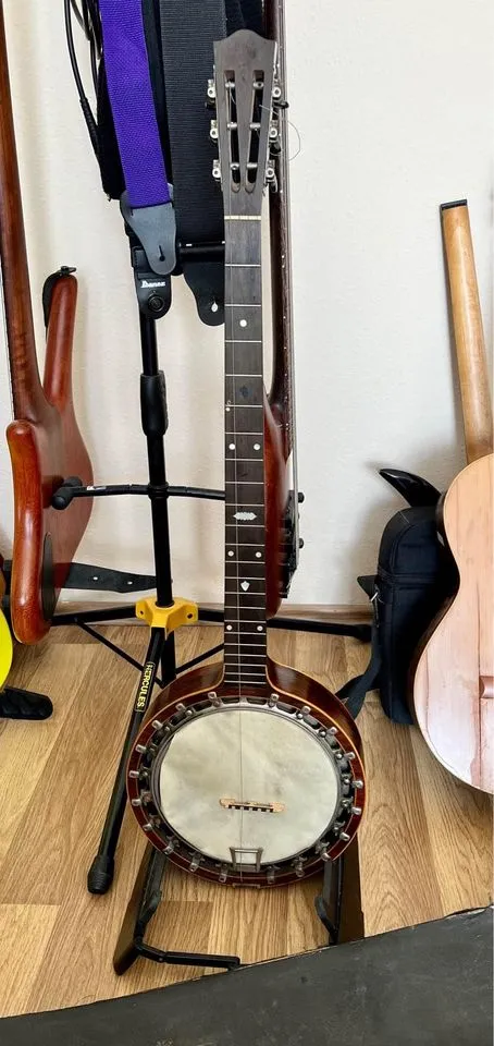 Eladó a képeken látható 100 évesnél is idősebb, kézzel készült angliai banjo.